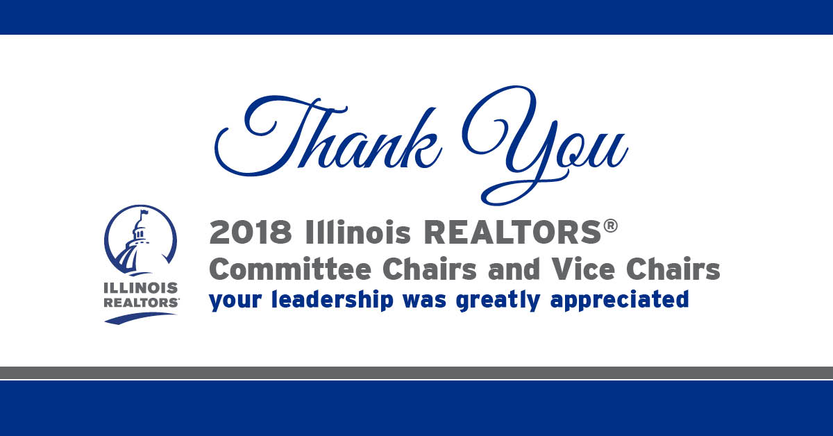 Illinois REALTORS® expresses its thanks to the 2018 chairs and vice chairs of all the Illinois REALTORS® committees as they served their last day in those positions.