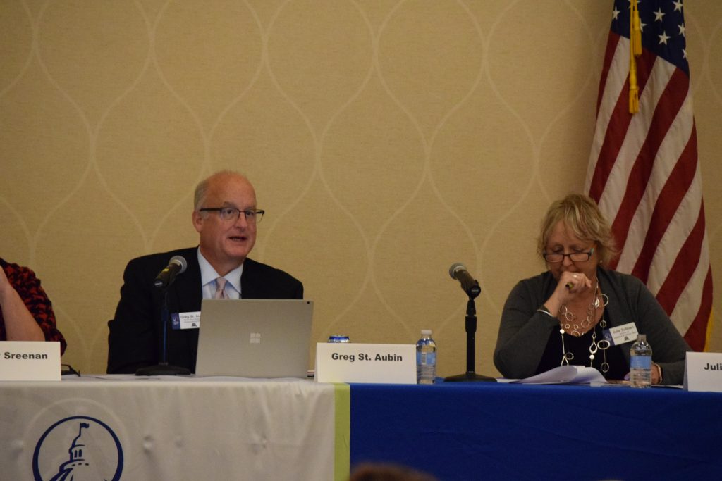 Greg St. Aubin and Julie Sullivan during the Public Policy & Government Affairs MIG session Thursday.