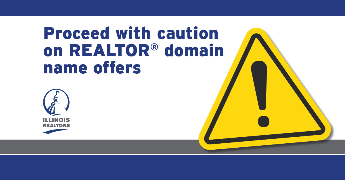 Members of Illinois REALTORS®, take note: If you receive an email seeking to sell you the domain ILREALTORS.com, or any variation of this, you should not buy it. Per the terms of use established by the National Association of REALTORS® (the owners of the REALTOR® mark), no person or entity could use Illinois REALTORS® or any variation thereof, other than Illinois REALTORS®, itself.