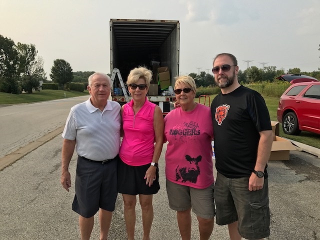 (l to r) REALTOR® Ed Prodehl, Sandy Prodehl, REALTOR® Joyce Zelazik and REALTOR®Frank Klimala during a break in the Homer Glen supply drive for Hurricane Irma victims.