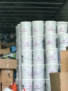 Homer Glen area businesses, including Coldwell Banker, provided donations and support. A Big R store guided local volunteers toward needed items that could be purchased in the store. One donor gave 75 five-gallon buckets full of cleaning supplies one day, then came back the next day with 90 more.