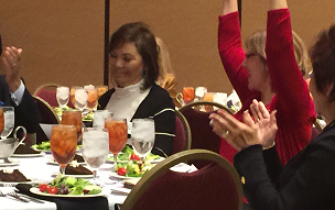 Sonia Anaya (left) and colleagues react to announcement of the REALTOR® Political Involvement Award.
