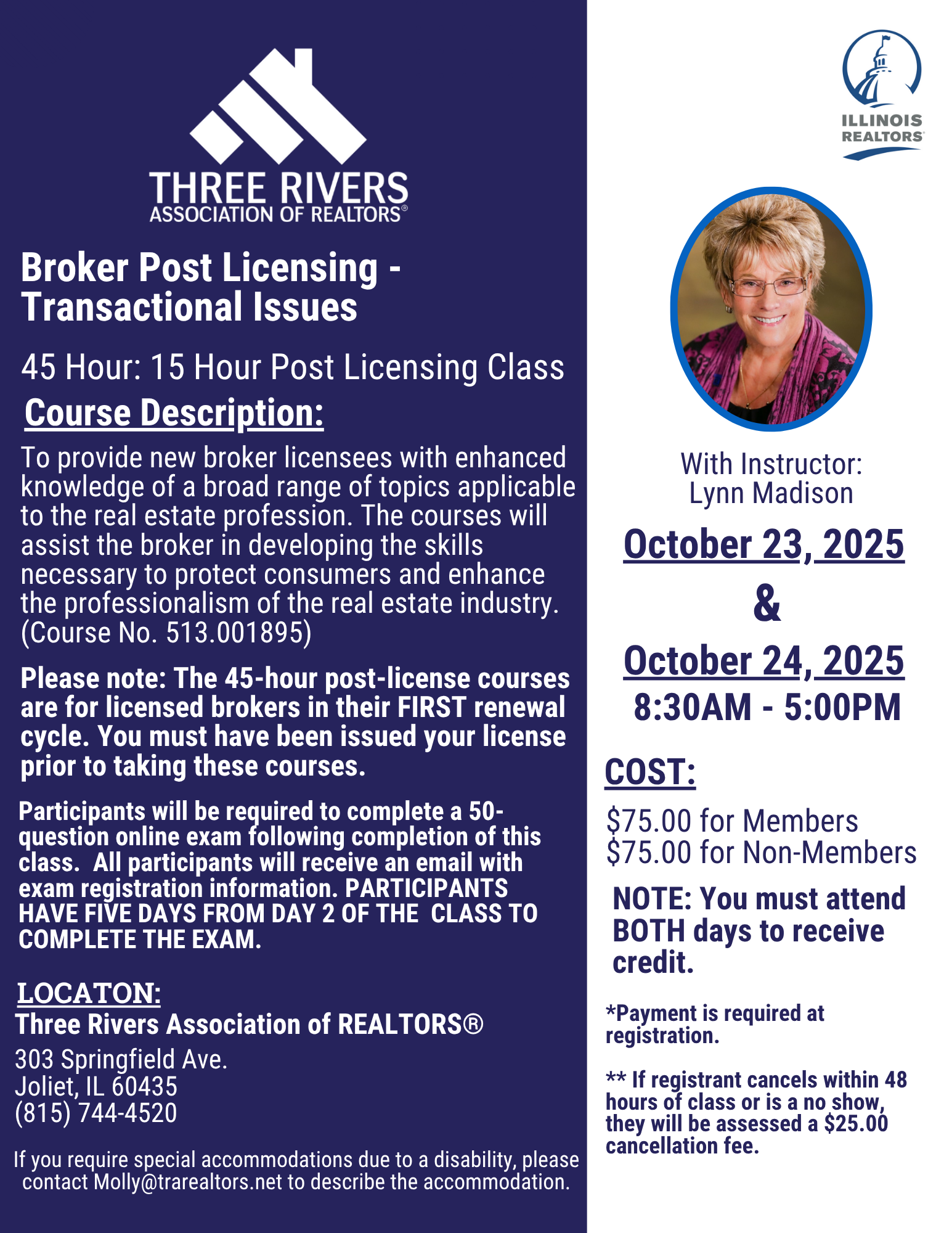 15-Hour Broker Post-License Transactional Issues (1 of 3 new, mandatory 15-hour post-license courses)